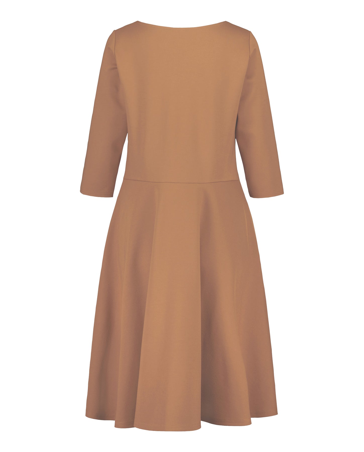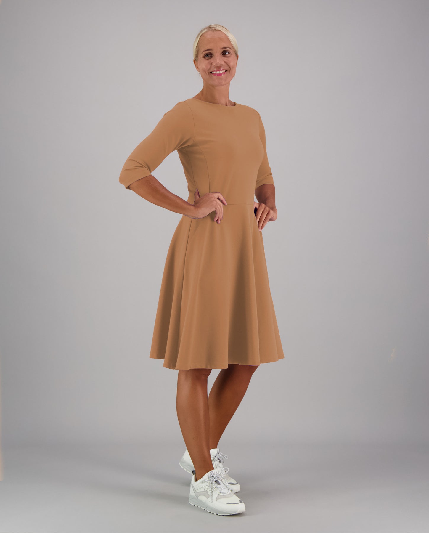 The dress is a well-fitting, shape-retaining workwear. This bell-shaped LEMLAND dress is suitable for formal occasions and leisure. The material of the dress is very pleasant on the skin but feels supportive. The bell-shaped hem reaches the knee. The dress has 3/4 sleeves and a boat neckline. The dress is equipped with spacious pockets, which makes Lemland even more usable at work and in everyday life.